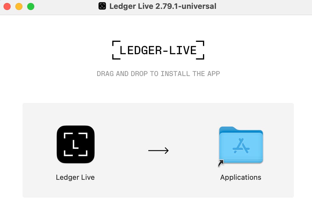 - اپلیکیشن لجر والت را به پوشه Applications کشیده و رها کنید.