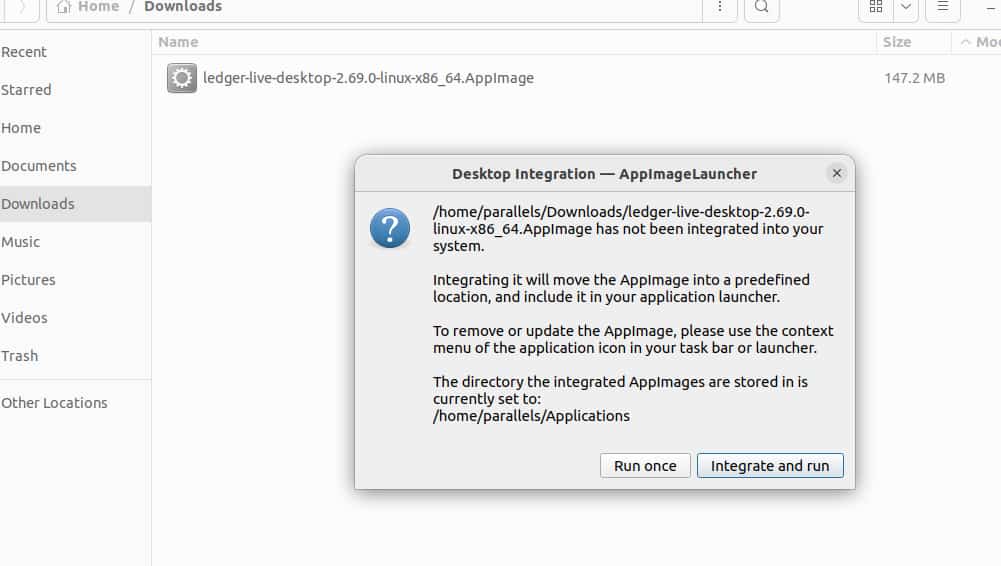 - برای دانلود و نصب جدیدترین پکیج amd64 .deb وارد این لینک شوید. با نصب AppImageLauncher مدیریت اپلیکیشنهایی مثل لجر والت راحتتر خواهد بود.