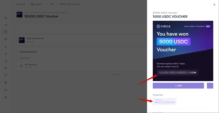 - ارسال NFTهایی با عناوین جذاب مثل "پیشنهاد ویژه" یا "جایزه خودتان را مطالبه کنید."